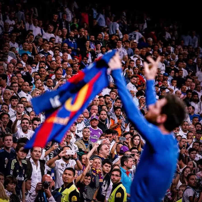 3- احتفال ليو مع جماهير برشلونة في 2017، بعد أن سجّل سيرجي روبيرتو الهدف السادس أمام باريس سان جيرمان بدوري الأبطال، والذي أهّل البلوجرانا للدور ربع النهائي، بعد الخسارة في الذهاب (4-1).