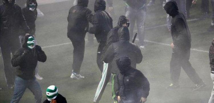 وألقت عناصر أولتراس باناثينايكوس الالعاب النارية وادوات اخرى على الملعب وتصدوا في البداية لقوات الأمن، قبل أن تهدأ الأمور.