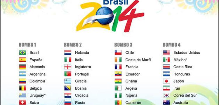 أعلن الاتحاد الدولي لكرة القدم "فيفا" عن أن قرعة كأس العالم 2014 التي سيقام بالبرازيل الصيف المقبل سيتم تحديد رؤوس المجموعات بها بحسب ترتيب المنتخبات في تصنيف الفيفا الشهري لشهر أكتوبر الماضي.
