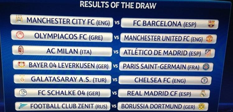 وأجريت يوم الاثنين قرعة الدور ثمن النهائي لدوري الأبطال لموسم 2013-2014.