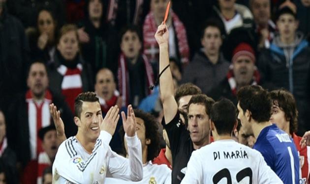 كان الحكم قد أشهر البطاقة الحمراء لنجم الريال البرتغالي كريستيانو رونالدو في منتصف الشوط الثاني تقريبا بداع الاعتداء على أحد لاعبي بلباو، مما أثار غضب إدارة النادي الملكي وجهازه الفني وجماهيره ولاعبيه، حيث اعتبروا الطرد ظالما.