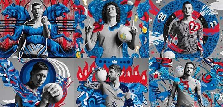 ونجح في الرسامون في تقديم ستة لوحات فنية طولها وعرضها 10 أقدام تبرز الروح والحيوية الكبيرة التي تتميز بها الدول التي ينتمي إليها اللاعبون الستة.