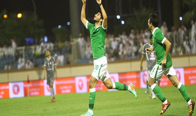 صالح الشهري يحتفل بهدفه في مرمي الطائي