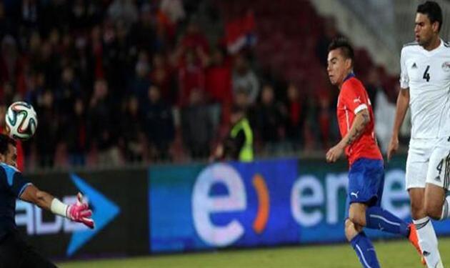 وأخرج إكرامي بقدمه تسديدة أرضية قوية من جانب فارجاس لاعب تشيلي في الدقيقة 29.