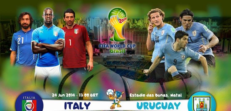 تلتقي إيطاليا مع أوروجواي بمدينة ناتال في المباراة الثالثة الأخيرة لكلا الفريقين في المجموعة الرابعة ببطولة كأس العالم الحالية بالبرازيل ، وكلا الفريقين يعلمان أن نتيجة هذه المباراة ستصعد بأحدهما إلى دور ال16 بينما ستطيح بالآخر من منافسات البطولة.