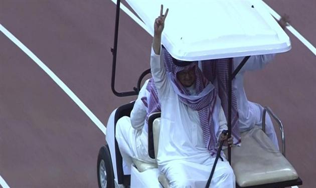 حرص الأمير فيصل بن تركي رئيس نادي النصر على تحية الجماهير النصراوية التي احتشدت باستاد الملك فهد الدولي على الرغم من إصابته بكسر في مفصل القدم اليسرى.