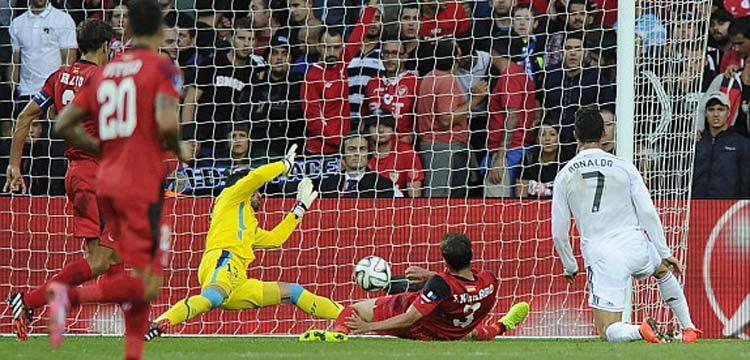 أبدع بيتو حارس مرمي إشبيلية أمام مهارة وتسديدة البرتغالي كريستيانو رونالدو بالسوبر الأوروبي بالشوط الأول.