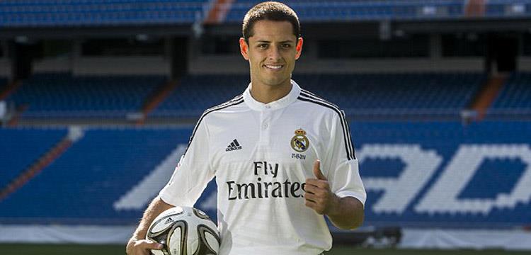 وقف المهاجم المكسيكي خابيير "تشيتشاريتو" هيرناندز، لاعب ريال مدريد الإسباني الجديد المعار من مانشستر يونايتد الإنجليزي، أمام عدسات المصورين أثناء تقديمه في ملعب سانتياجو برنابيو بقميصه الجديد الذي سيرتديه مع النادي الملكي رقم 14.
