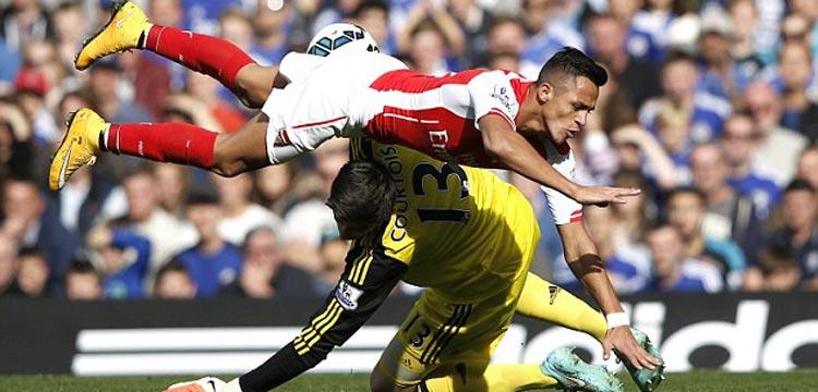 نُقل الحارس البلجيكي لفريق تشيلسي، تيبو كورتوا، لمستشفى في لندن للخضوع للعلاج بعد تلقيه ضربة قوية في الرأس خلال اصطدامه بمهاجم أرسنال، التشيلي أليكسيس سانشيز خلال مباراة الفريقين اليوم بالبريميير ليج والتي انتهت بفوز البلوز بهدفين نظيفين.