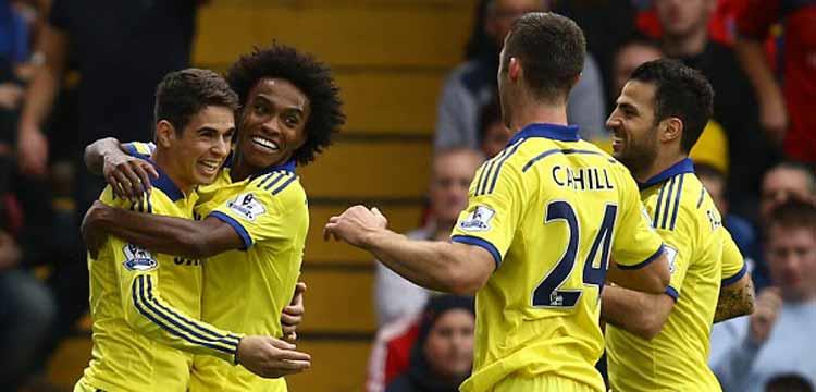 وافتقد تشيلسي جهود هدافه الاسباني دييجو كوستا بسبب الإصابة ولكن الفريق نجح في حسم الفوز بواقع هدف في كل شوط.