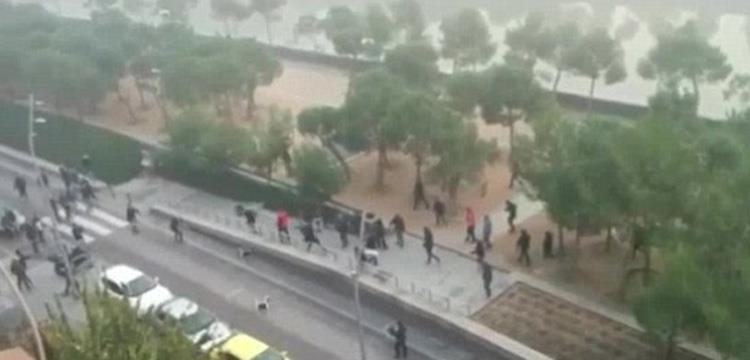 ودارت الاشتباكات، التي ندد بها نادي أتلتيكو مدريد بشدة في بيان، على مدار ساعة مما سفر عن إصابة الأشخاص الـ12.
