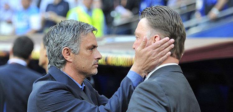 فان جال المدير الفني لمانشستر يونايتد مع نظيره في تشيلسي جوزية مورينيو