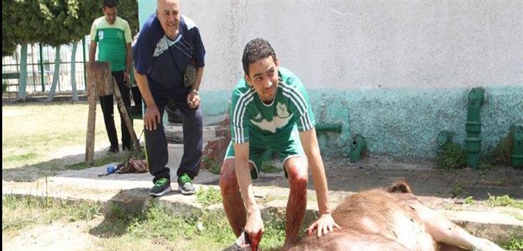 قام أحمد رؤوف مهاجم النادي المصري البورسعيدي بذبح "عجل" داخل النادي نظرا لما يعانيه الفريق من "سوء توفيق" في المباريات الأخيرة.