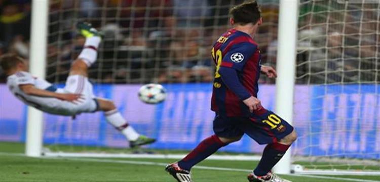 ليونيل ميسي لحظة تسجيله للهدف الثاني في مرمى بايرن ميونخ