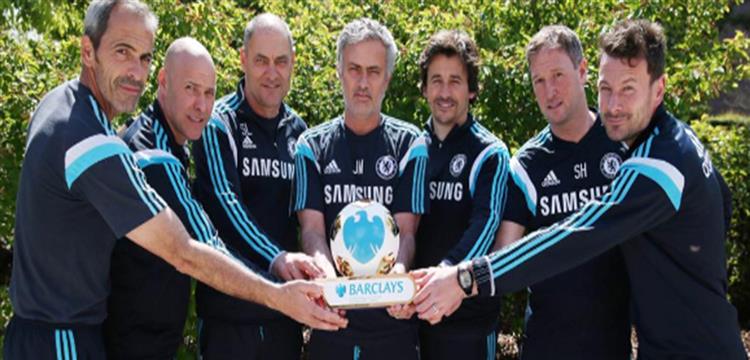جوزيه مورينيو يتوسط الطاقم الفني لتشيلسي