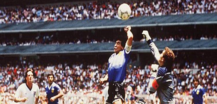 مارادونا يسجل هدفاً في إنجلترا بيده