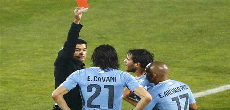 تعرض اللاعب إديسون كافاني مهاجم منتخب أوروجواي للطرد خلال المباراة التي تجمع فريقه مع تشيلي في دور الثمانية من مسابقة كوبا أميركا.