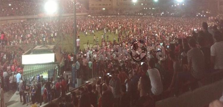 ويحاول مسؤولو الامن في النادي الاهلي اخلاء ارض ملعب التتش من الجماهير، بجانب مناشدات من المسؤولين للجماهير باخلاء الملعب املا في انطلاق المران.