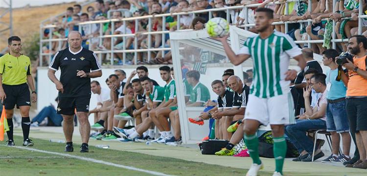 عمرو طارق من خلفه بيب ميل المدير الفني لريال بيتيس
