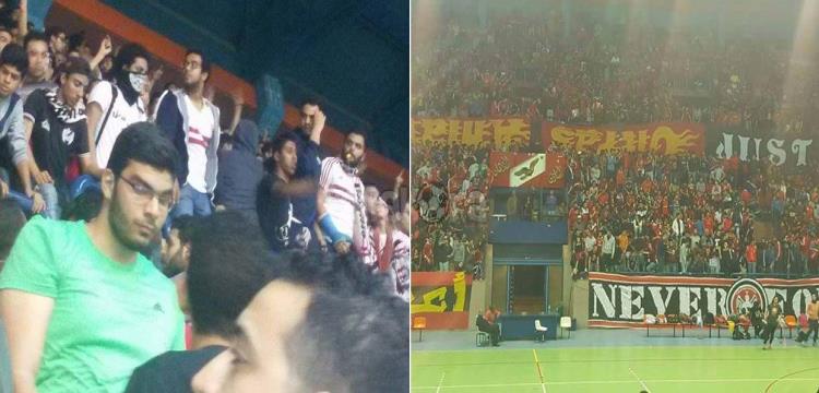 وتواجدت مجموعة من جماهير نادي الزمالك داخل صالة الأمير فيصل بالنادي الأهلي لمتابعة المباراة.