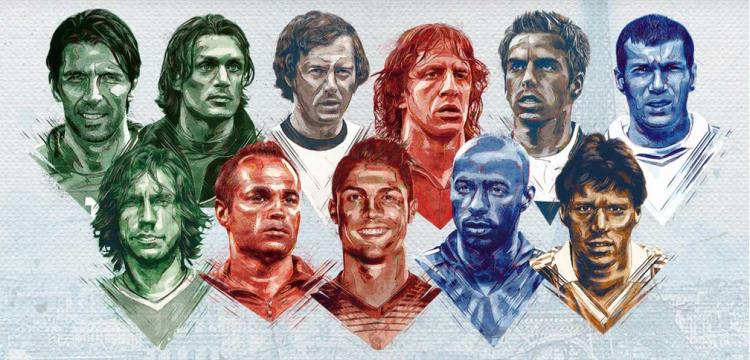 التشكيل ضم 4 لاعبين سيشاركون في بطولة 2016 وهم الإيطالي بوفون، والإسباني إنييستا، والبرتغالي كريستيانو رونالدو، والألماني فيليب لام، بينما جاء، وضمت القائمة لاعبين أساطير في بلادهم أمثال فان باستن وزيدان وهنري ومالديني.