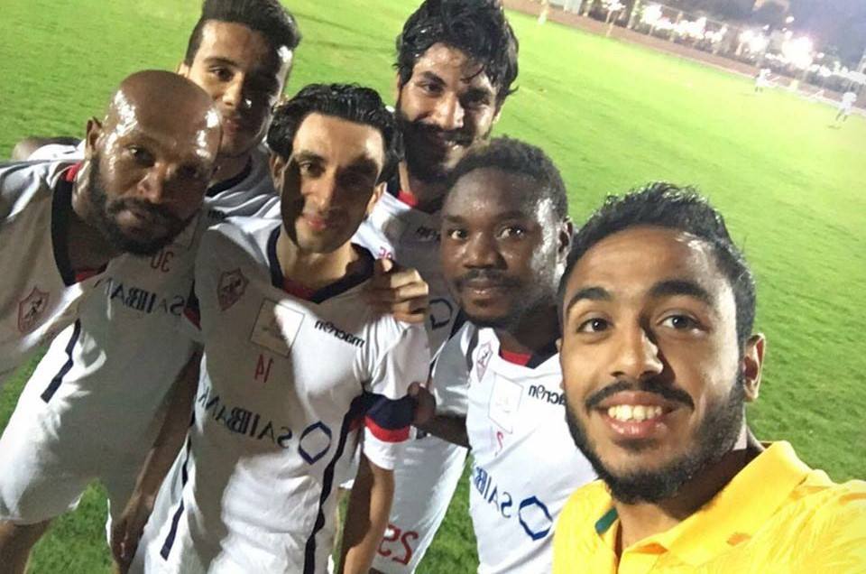 تواجد محمود عبدالمنعم "كهربا" لاعب الزمالك السابق في مران الفريق بمقر النادي لدعم زملاءه قبل اللقاء الافريقي.