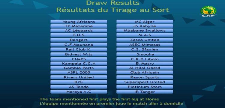 وأسفرت نتائج باقي المباريات عن فوز تاندا الإيفواري على ضيفه بلاتينيوم ستارز الجنوب أفريقي 2 / صفر، وليوبار الكونغولي على ضيفه مبابان سوالوز السوازيلاندي 1 / صفر، فيما تعادل إينوجو رينجرز النيجيري مع ضيفه زيسكو يونايتد الزامبي 2 / 2، وباراك يونج الليبيري مع سوبر سبورت يونايتد الجنوب أفريقي 1/1.
