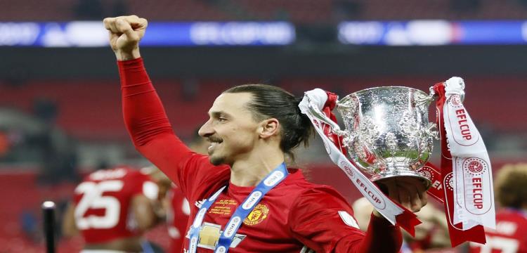 إبراهيموفيتش يحتفل بكأس رابطة المحترفين الإنجليزية