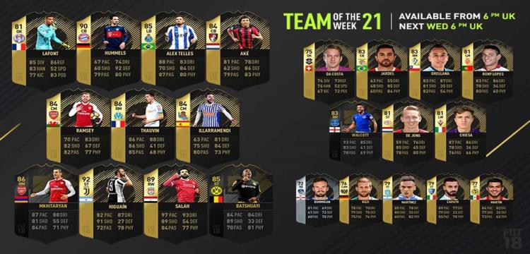 وتطور كارت صلاح الخاص بتطبيق"FIFA Ultimate Team" او "FUT" هذا الأسبوع في مركز "RW" ويمتلك تقييم اجمالي 89، وكان قد بدء بكارت يحمل تقييم 83.