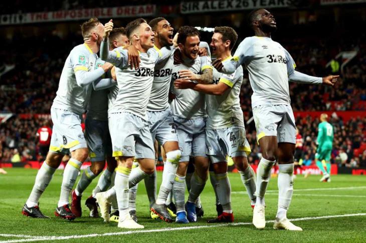 ودع مانشستر يونايتد، كأس كاراباو من دور الـ32، بعد سقوط درامي أمام ديربي كاونتي الذي يقوده النجم الإنجليزي فرانك لامبارد.