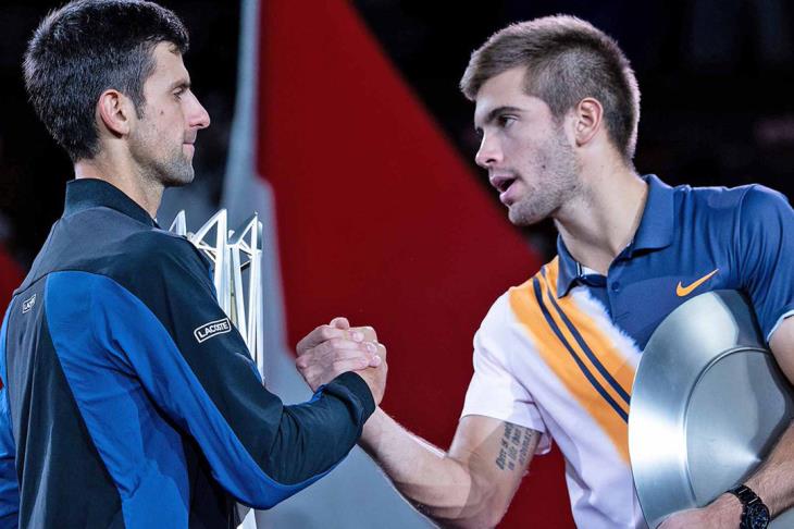واحتاج ديوكوفيتش إلى ساعة واحدة و36 دقيقة لإلحاق الهزيمة بكوريتش الذي صعد لنهائي إحدى بطولات الأساتذة للمرة الأولى في مسيرته.