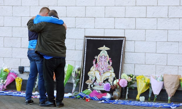 وقالت جارديان: "ملأت الزهور استاد كينج باور هذا الصباح بعد تحطم طائرة هليكوبتر يعتقد أنها كانت تحمل فيشاي سريفادادرابراها ، مالك نادي ليستر سيتي".
