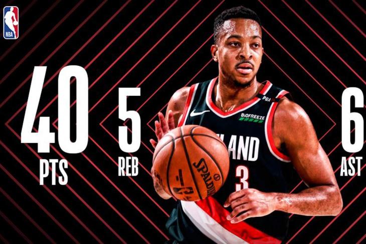 سجل سي.جيه ماكولوم 40 نقطة وست تمريرات حاسمة ليقود بورتلاند تريل بليزرز إلى الفوز على ميلواكي بكس 118 / 103 مساء الثلاثاء (صباح الأربعاء بتوقيت جرينيتش) ضمن منافسات دوري كرة السلة الأمريكي للمحترفين.