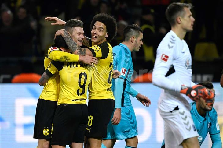 عزز فريق بوروسيا دورتموند موقعه في صدارة الدوري الألماني لكرة القدم بفوزه على ضيفه فرايبورج 2 /صفر اليوم السبت في المرحلة الثالثة عشر للمسابقة.