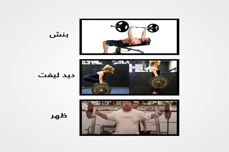 ويخوض اللاعبون 3 مسابقات لرفع الأثقال، وهم: "البنش، وديدليفت، والظهر".