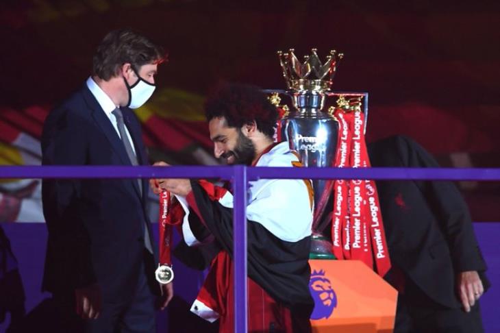 محمد صلاح لحظة استلامه ميدالية البريميرليج