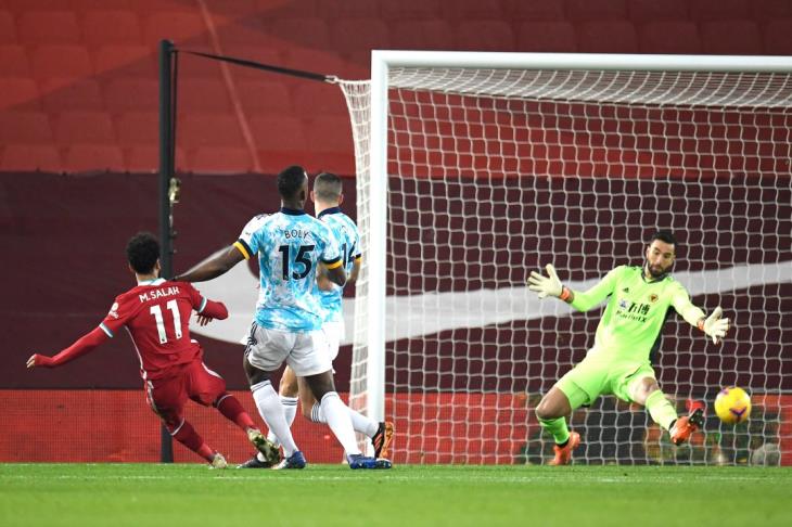 واستغل صلاح خطأ كونور كودي مدافع نادي وولفرهامبتون، ليخطف الكرة ويسدد الكرة لتسكن شباك روي باتريسيو حارس مرمى وولفرهامبتون.