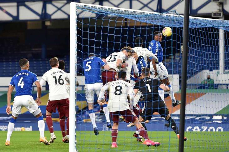 ياري مينا يسجل هدف الفوز لإيفرتون