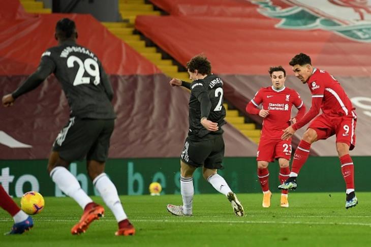 وانطلق راشفورد بالكرة في الجانب الأيسر للملعب ليمرر كرة إلى لوك شو الذي حول عرضية أرضية داخل منطقة جزاء ليفربول، ليسددها فيرنانديز أرضية نحو المرمى لكن أليسون تألق في التصدي لها بقدمه مع الدقيقة 75.