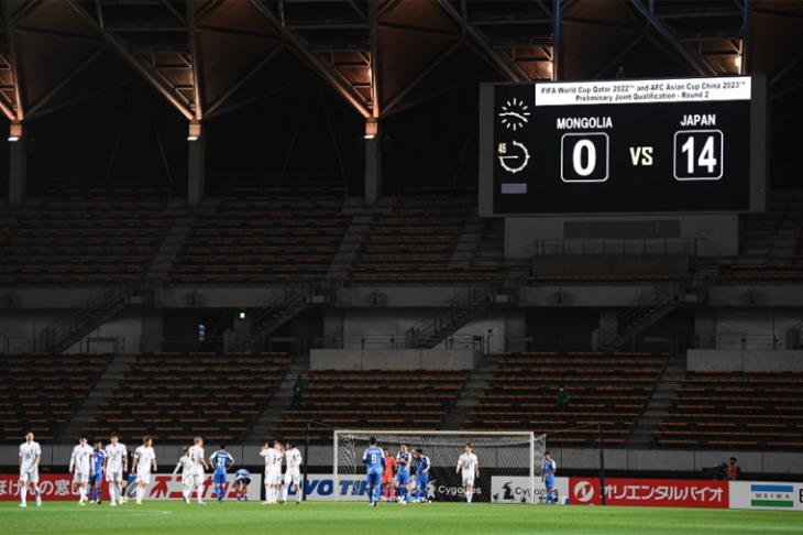 اكتسح منتخب اليابان مضيفه منغوليا 14 / صفر اليوم الثلاثاء، على ستاد فوكودا في تشيبا، ضمن منافسات المجموعة السادسة في التصفيات الآسيوية لكأس العالم 2022 في قطر وكأس آسيا 2023 في الصين.