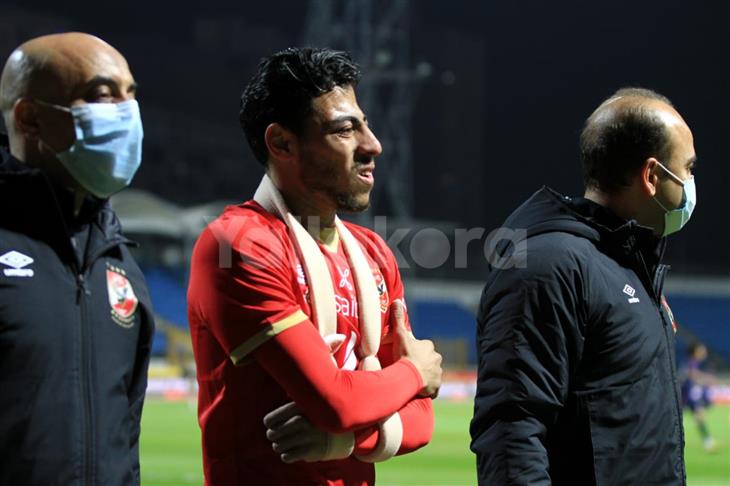 أكرم توفيق يغادر مباراة الأهلي والنصر مصاباً