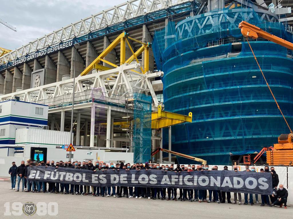 المشهد لم يختلف كثيرًا في العاصمة الإسبانية "مدريد" بعدما قام عدد من مشجعي ريال مدريد أيضًا بالوقوف أمام ملعب "سنتياجو برنابيو" الخاص بالفريق الملكي للاحتجاج أيضًا على فكرة الانضمام للبطولة.