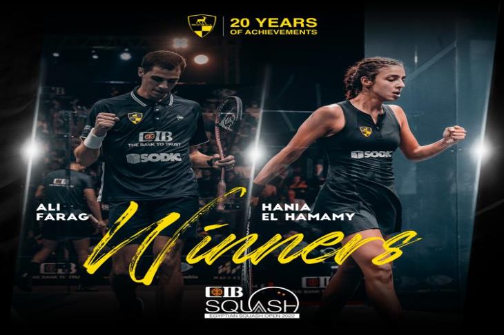 تُوج الثنائي هانيا الحمامي وعلي فرج لاعبي وادي دجلة ببطولة مصر الدولية المفتوحة للإسكواش 2022.