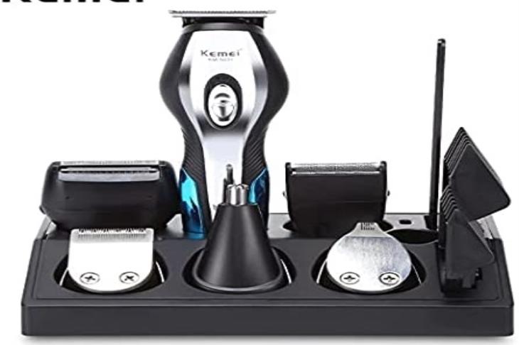 يمكن استخدام طقم التصفيف من ماكينة KM-5031 11 في 1 كماكينة تشذيب، ماكينة حلاقة، ماكينة تشذيب شعر الأذن والأنف، وتشذيب اللحية وقصها، وماكينة تشذيب للشعر، ومقص للشعر.