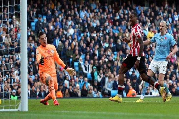 جانب من مباراة مانشستر سيتي وبرينتفورد