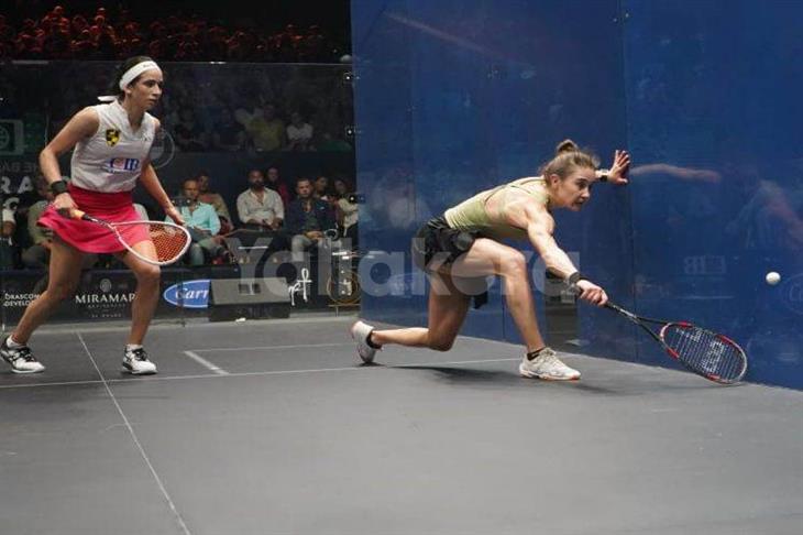 توجت نوران جوهر المصنفة وقم 2 عالميا ببطولة الجونة للاسكواش البلاتينية لمنافسات السيدات بعد الفوز على البلجيكية نيل جيليس.