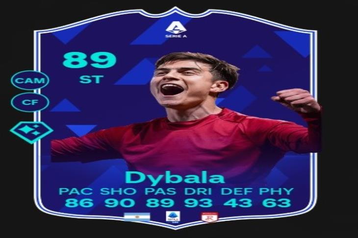 توافرت بطاقة اللاعب الأرجنتيني باولو ديبالا لاعب فريق روما الإيطالي في تحديات لعبة FC24 بطاقات 89.