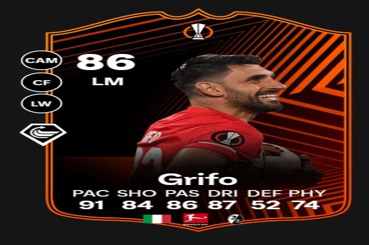 توافرت بطاقة اللاعب الإيطالي فينتشينزو جريفو لاعب فريق فرايبورج الألماني في تحديات لعبة FC24 بطاقات 86.