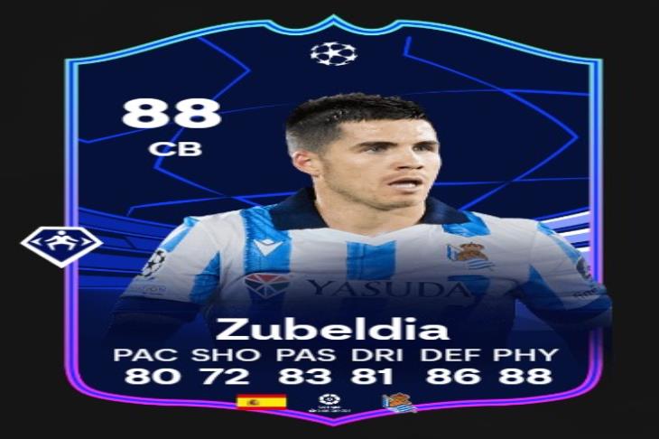 توافرت بطاقة الإسباني إيجور زوبيلديا مدافع فريق ريال سوسيداد الإسباني في تحديات لعبة FC24 بطاقات 88.