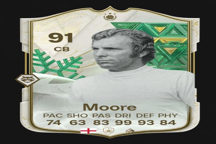 توافرت بطاقة أسطورة منتخب إنجلترا السابق بوبي مور في تحديات لعبة FC24 بطاقات 91.